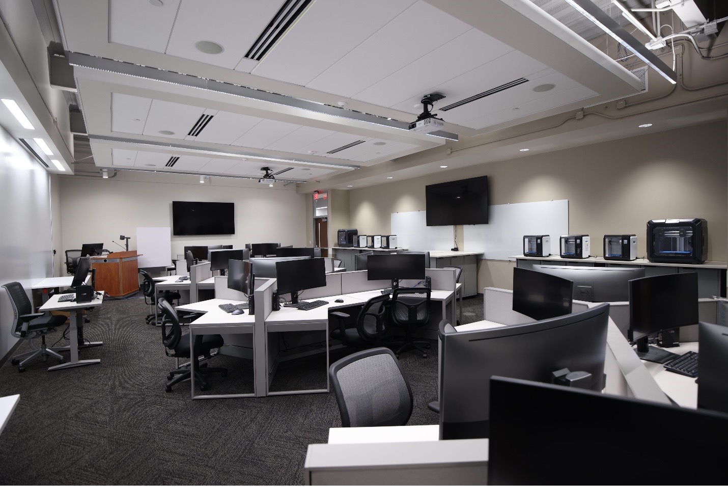 The EE program has access to state-of-the-art Computer-Aided Design (CAD) and the Rapid Prototyping (RP) Laboratory. The CAD Laboratory is located in the BASS 247. This lab has 24 CAD workstations with eight (8) 3D printers and two laser printers. The lab has an area of 1174 SF and provides students with hands-on experience in engineering design, manufacturing, and rapid prototyping.