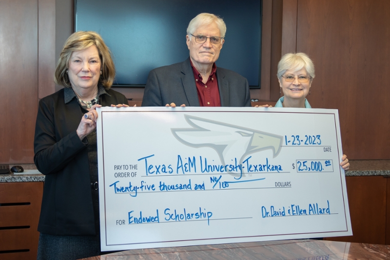 “We are so thankful to have received this wonderful gift from Dr. and Mrs. Allard,” said Texas A&M University-Texarkana president Dr. Emily Cutrer. “Dr. Allard is a treasured member of our Eagle Family and a beloved instructor to our students.” Dr. Allard frequently gets updates from his former students letting them know about significant accomplishments in their lives.