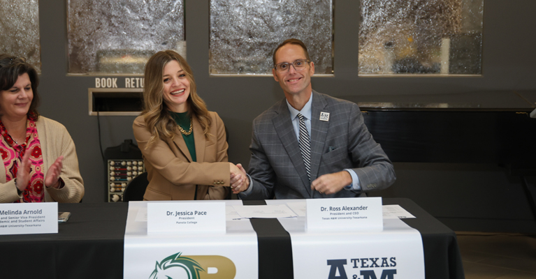 “We are excited to announce our new partnership with Panola College,” said Texas A&M University-Texarkana President Dr. Ross Alexander. “Since 1947 Panola College has served the people of east Texas by offering an exceptional educational experience in more than 50 programs of study. The pathways created by this partnership will allow Panola College graduates in business and education to seamlessly transition into related programs at A&M-Texarkana to complete a bachelor’s degree. We look forward to helping their students, as well as their faculty and staff members, continue their education journey.”