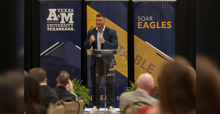 Distinguished Speaker Series event to raise money for scholarships to A&M-Texarkana. This year’s event, held on April 10th inside the Texarkana, Texas Convention Center, featured former professional athlete, football analyst, and Heisman Trophy winner Tim Tebow.